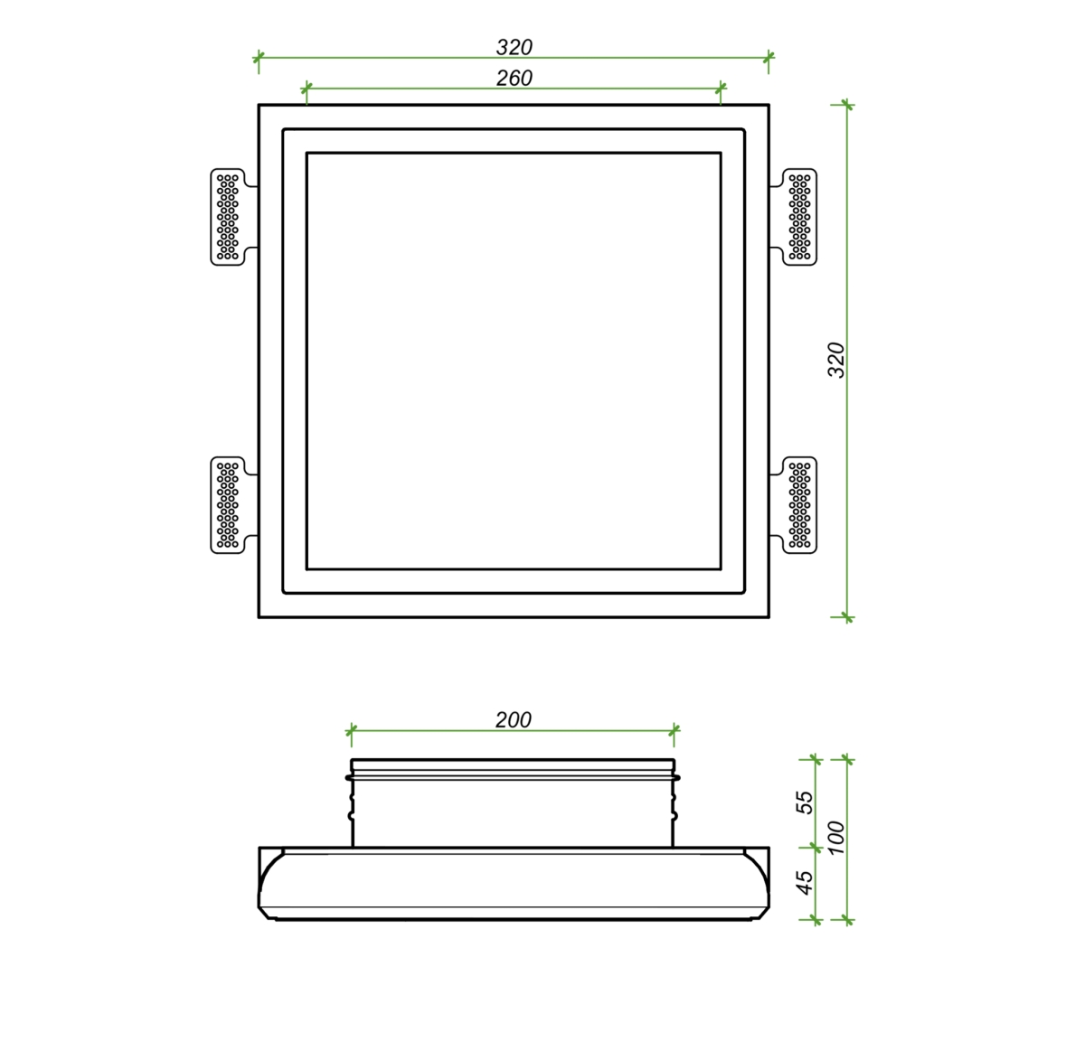 Размеры:330х330х150